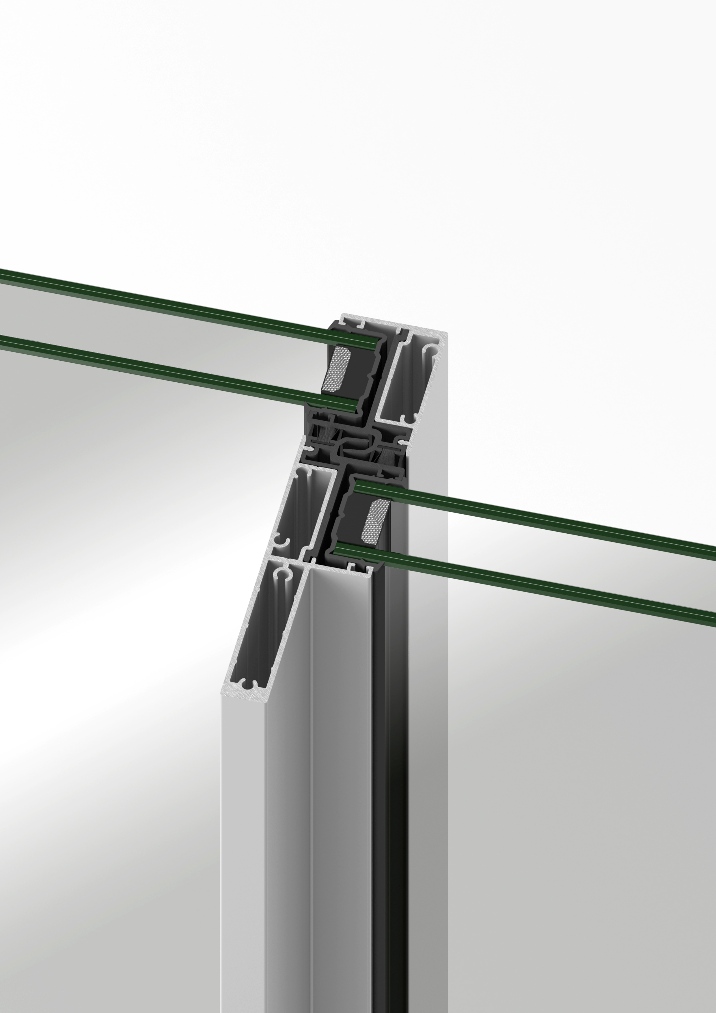 A sua estética simples e minimalista deixa ver um nó central de apenas 34 mm, e as suas folhas estão preparadas para acolherem uma espessura total de envidraçamento de 32 mm.